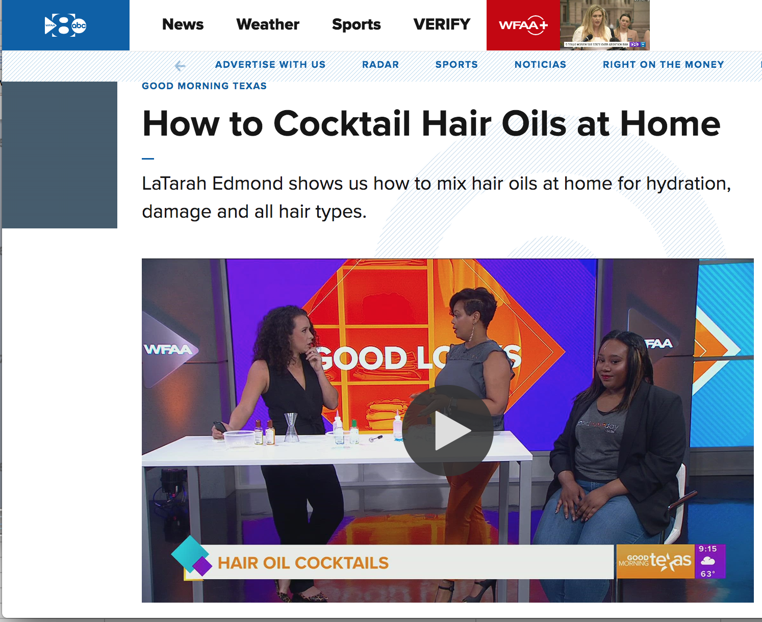 LaTarah Edmond, Owner and stylist at Good Hair Day Salon, spent some time on WFAA Channel 8’s Good Morning Texas discussing natural oil cocktails... Read More...